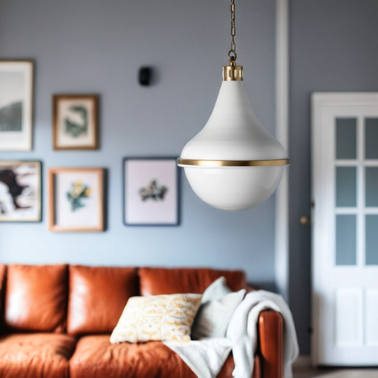 AusverkauftHängeleuchte Vintage Stil aus Opalglas und Messing weiß rund 30cm