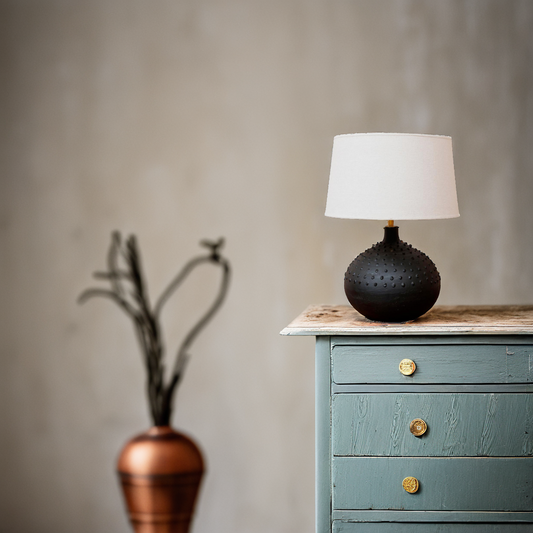 Tischleuchte Boho Stil aus Keramik schwarz 55x40cm