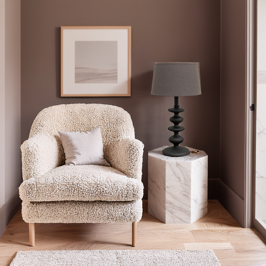Normaler Preis 109,00 EURNormaler PreisStückpreis / proVerkaufspreis 109,00 EURCurvyTischleuchte Boho Modern Stil mit Schirm aus Leinen schwarz braun 54cm hoch