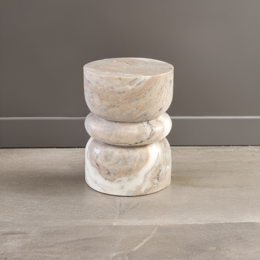 Bernot passt perfekt in minimalistische oder kunstvolle Umgebungen, wo er seine elegante Marmor-Oberfläche zur Geltung bringen kann. Stelle ihn neben ein Sofa oder einen Lieblingssessel und kombiniere ihn mit einer stilvollen Tischlampe oder einer kleinen Skulptur, die seine Liebe zur Kunst betont. Mit seinen klaren Rundungen ist Bernot ideal, um als dezentes Statement Piece zu dienen, das deiner Einrichtung einen Hauch von Luxus verleiht.