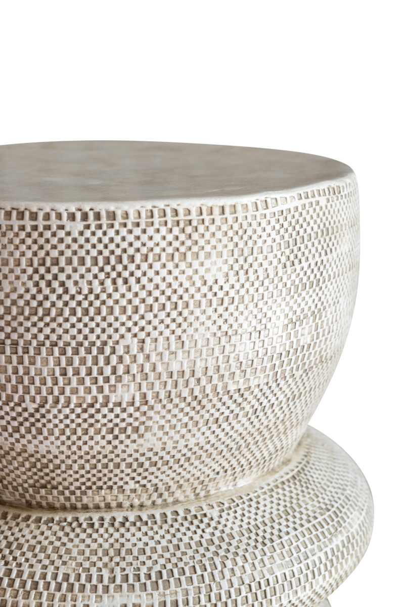 Otis macht sowohl als Beistelltisch als auch als Hocker eine ausgezeichnete Figur. Neben einer gemütlichen Lounge-Ecke bringt er eine Prise Exotik ins Wohnzimmer, während er auf der Terrasse oder dem Balkon eine stilvolle Ergänzung ist. Seine strukturierte Oberfläche setzt besonders in Kombination mit glatten Materialien wie Glas oder Metall einen spannenden Kontrast. Wer es warm und einladend mag, kombiniert ihn mit Holzmöbeln und natürlichen Farben.