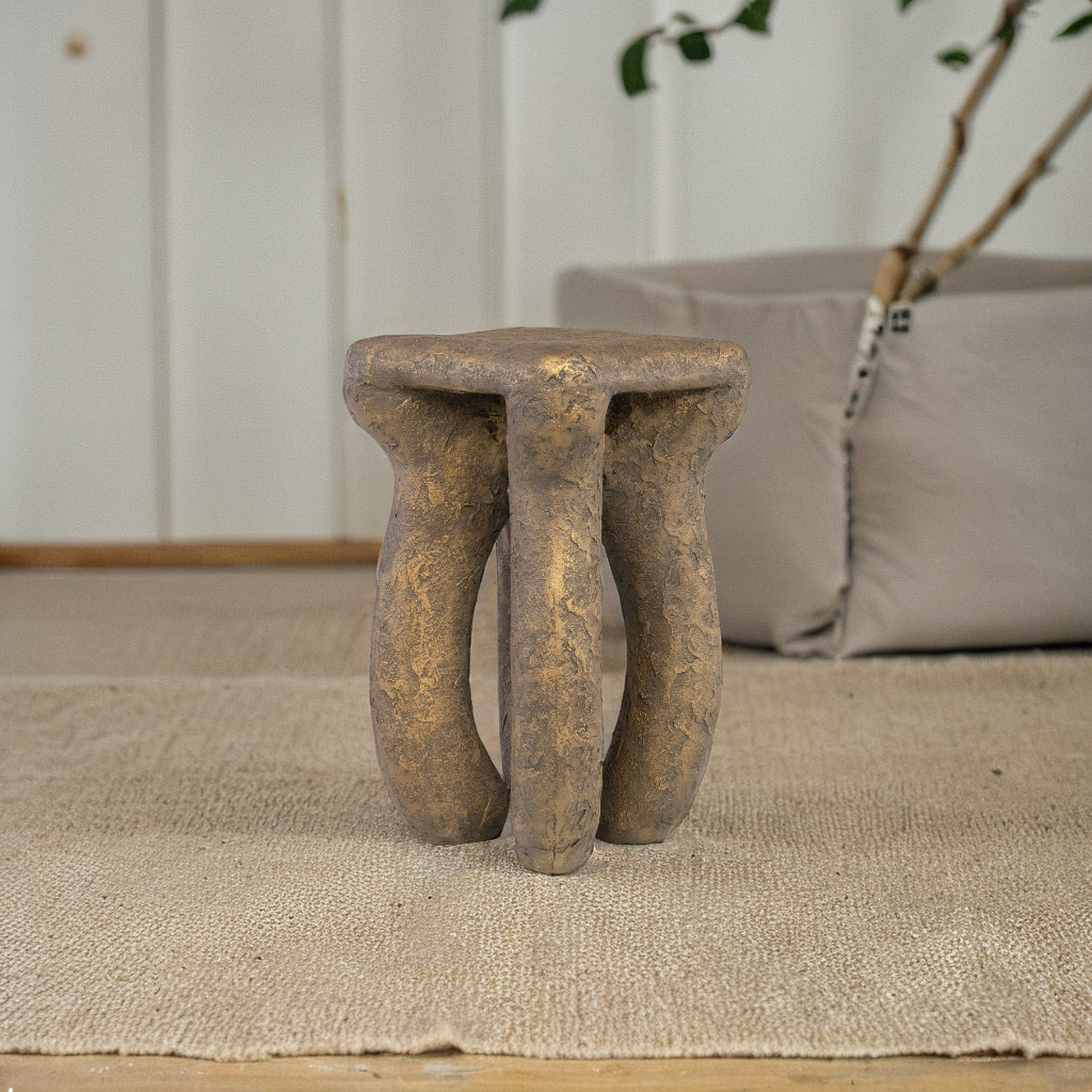 Alen, der Beistelltisch im Ethno Stil, besticht mit seiner runden Form und einer edlen Bronze-Optik. Der Tisch mit einem Durchmesser von 40 cm ist ideal für kleine Dekorationen oder als praktische Ablage im Wohnzimmer, Schlafzimmer oder Flur.