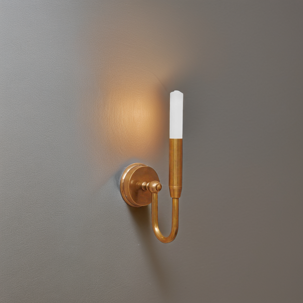 Elli, die Wandleuchte im Vintage Stil, beeindruckt mit ihrer Kombination aus hochwertigem Messing und klarem Acrylglas. Die Wandleuchte bringt mit ihrem klassischen Design einen Hauch von Nostalgie in dein Zuhause.