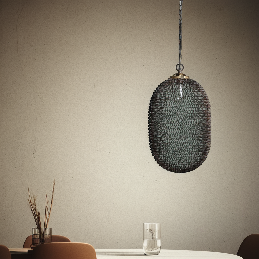 Lea ist eine Hängeleuchte im Japandi Stil, die minimalistisches Design mit natürlicher Eleganz verbindet. Gefertigt aus braunem Eisen und mit einer ovalen, runden Form, schafft sie eine harmonische Lichtatmosphäre in deinem Esszimmer, Wohnzimmer oder Flur.