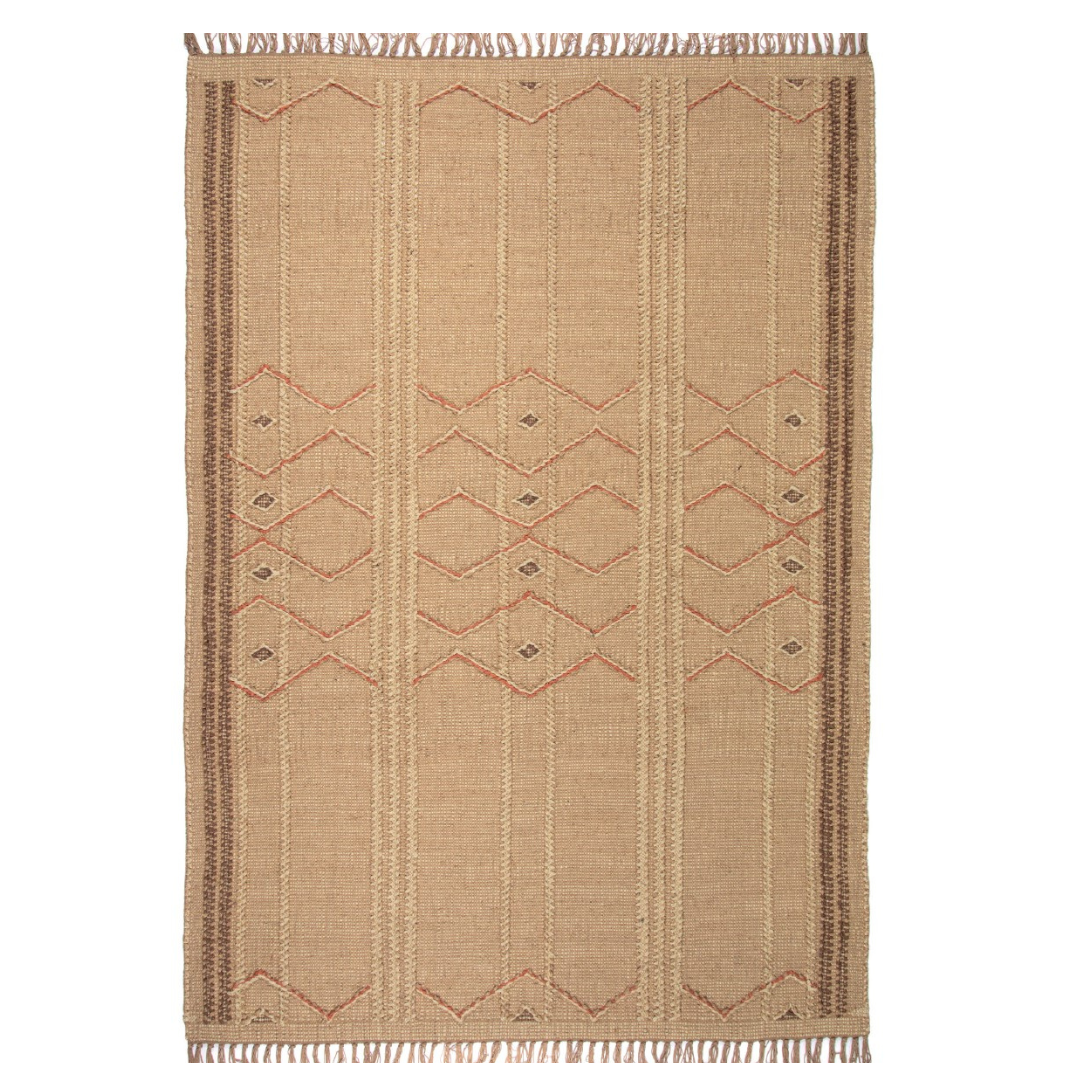 Teppich Carthage 160x230 cm: Dieser handgewebte Teppich aus 80 % Jute und 20 % Baumwolle überzeugt durch sein Ethno-Design und die feine Struktur. Mit einem Gesamtgewicht von 1500 g/m² ist er leicht und dennoch robust. Ideal für Wohnzimmer, Schlafzimmer oder Eingangsbereiche bringt er eine exotische Note und rundet das Wohnambiente stilvoll ab. Ein perfektes Accessoire für naturverbundene, stilvolle Einrichtungskonzepte.