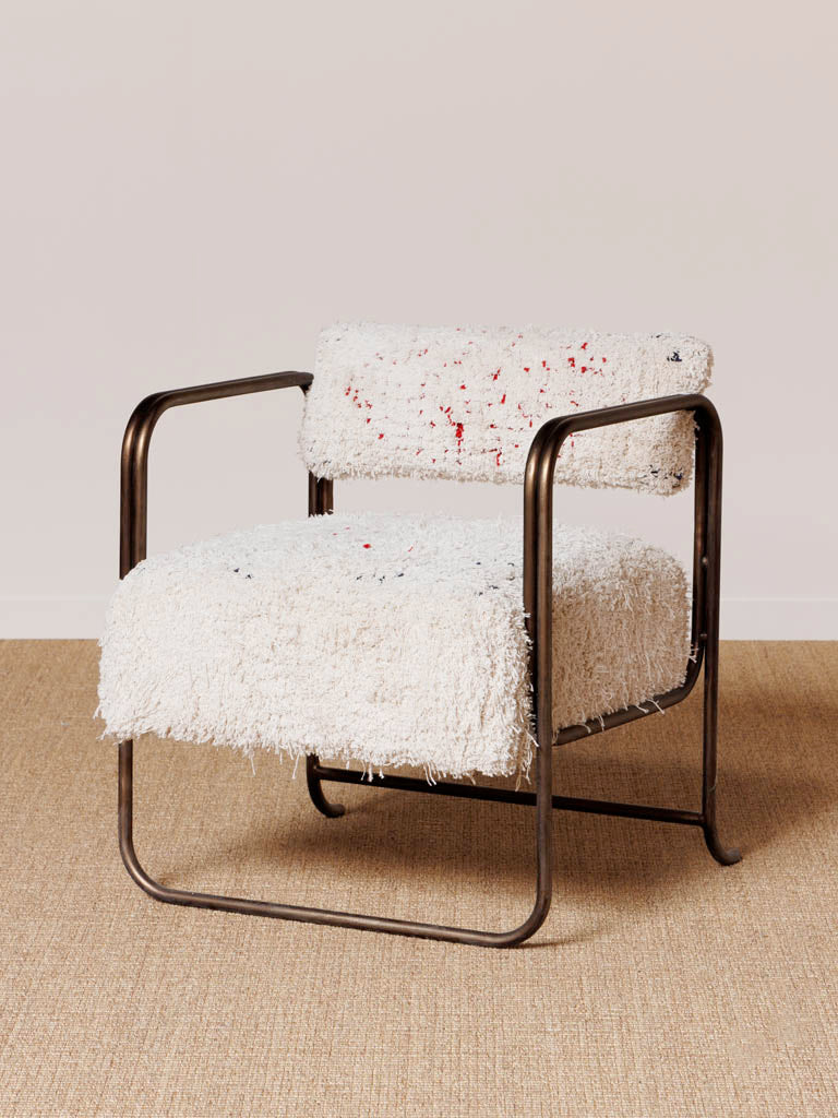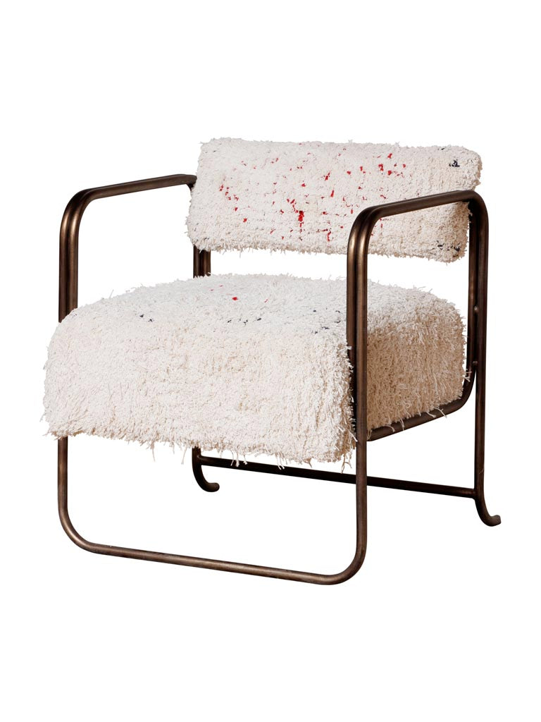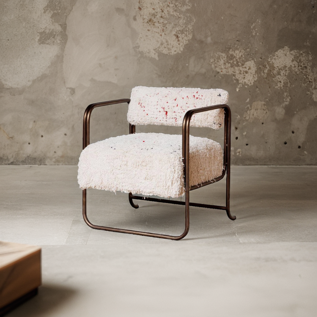 Valentin, der moderne Sessel, verbindet eine bronzefarbene Struktur mit einem weichen, weiß melierten Stoffbezug. Das schlichte Design und die hochwertigen Materialien machen Valentin zu einer bequemen und stilvollen Sitzgelegenheit für dein Wohnzimmer oder Schlafzimmer.