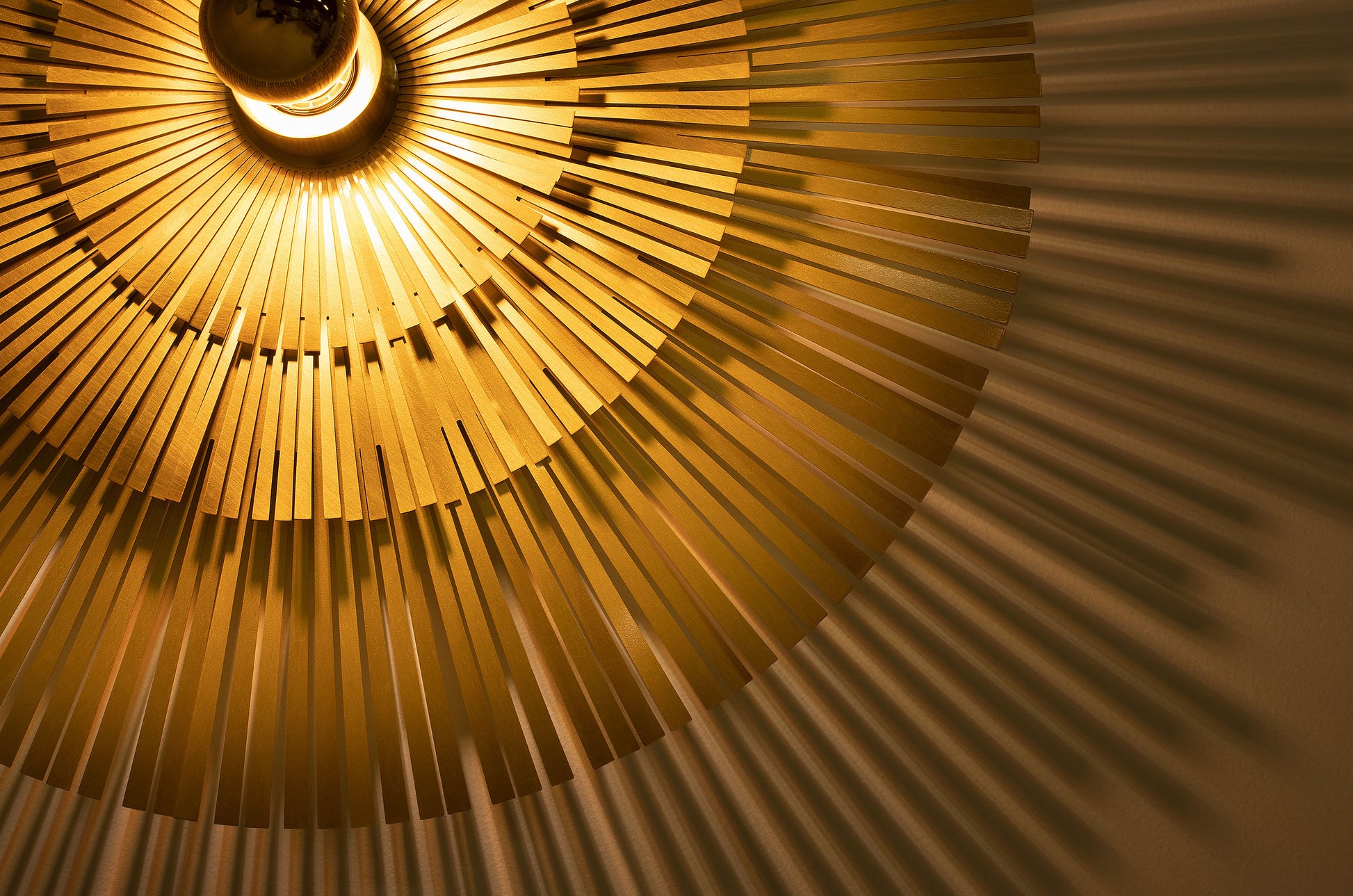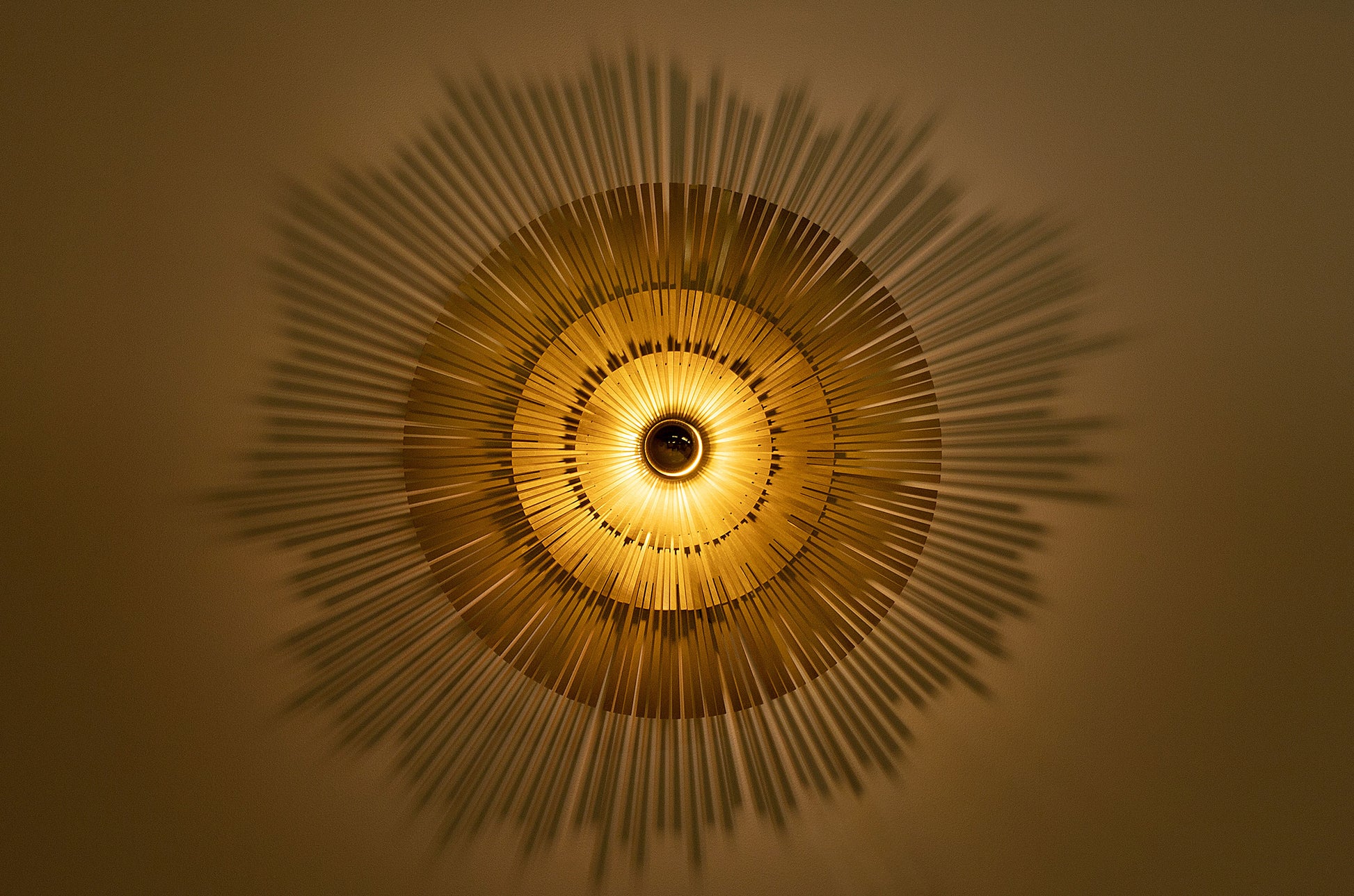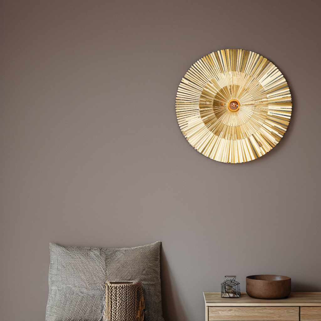 Jasmin fällt sofort ins Auge – sie hat diese besondere Ausstrahlung, die dich dazu bringt, immer wieder hinzuschauen. Man verliert sich gerne in ihren Formen, die sich wie sanfte Sonnenstrahlen ausbreiten und ihre Umgebung erleuchten. Am liebsten hängt Jasmin an der Wand, wo sie ihr volles Strahlen entfalten kann, ohne dabei aufdringlich zu wirken. Mit ihrem runden Design erinnert sie an die Wärme und Schönheit eines afrikanischen Fächers, und ihre Wirkung ist ebenso kraftvoll wie beruhigend.